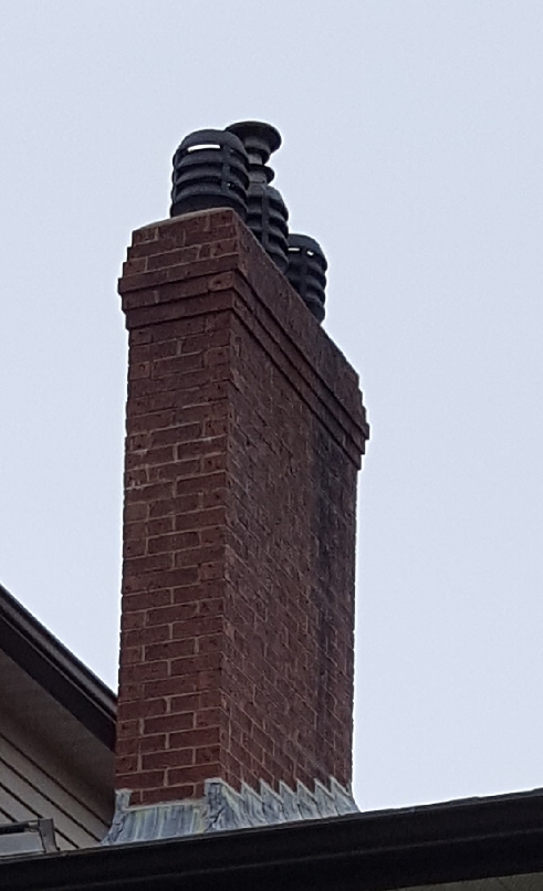 The homeowner's brick chimney was constructed like some residential double flue chimneys. Designed with a traditional brick fireplace located on the main level of the house with it's own independent flue, along with a woodstove in the basement that is vented through their remaining flue.
